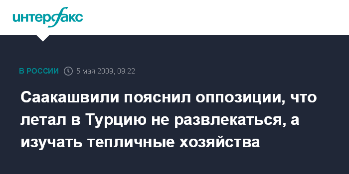Москва. 5 мая. INTERFAX.RU - Президент Грузии Михаил Саакашвили дал пояснения в связи с "подозрительным" интересом некоторых политиков в Тбилиси к его недавнему краткосрочному визиту в Турцию.