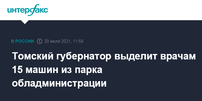 Москва. 20 июля. INTERFAX.RU - Губернатор Томской области Сергей Жвачкин решил ежедневно выделять для нужд больниц и поликлиник не менее 15 автомобилей из парка администрации региона, сообщила пресс-служба областного правительства.