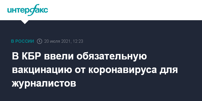 Москва. 20 июля. INTERFAX.RU - Управление Роспотребнадзора по Кабардино-Балкарии включило работников СМИ в перечень подлежащих обязательной вакцинации от коронавируса.