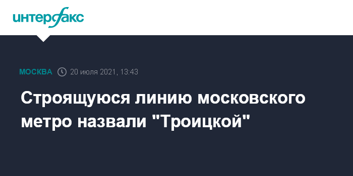 Москва. 20 июля. INTERFAX.RU - Линия московского метрополитена, которая пройдет от станции МЦК "Крымская" до города Троицка, получила название "Троицкая", сообщила во вторник пресс-служба мэра и правительства столицы.