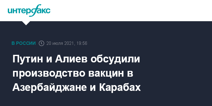 Путин, в частности, сообщил в ходе встречи, что Москва и Баку работают над развертыванием производства вакцин от коронавируса в Азербайджане. Алиев поблагодарил президента РФ за помощь Азербайджану в борьбе с коронавирусом.
