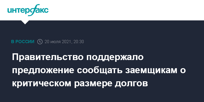 Правительство поддержало предложение сообщать заемщикам о критическом размере долгов