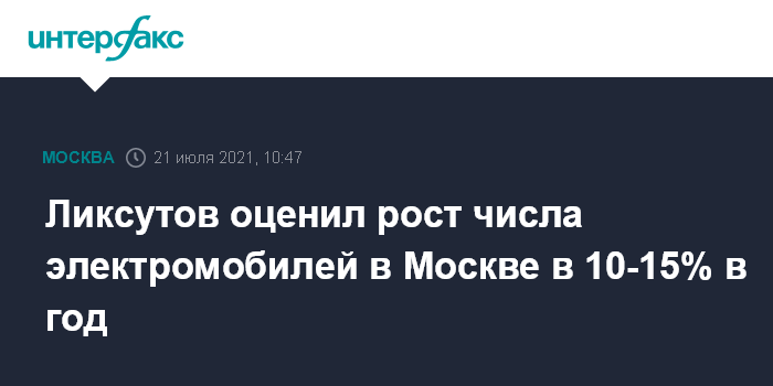 Москва. 21 июля. INTERFAX.RU - В Москве сейчас используется около 2000 электромобилей, каждый год их становится примерно на 10-15% больше, заявил Reuters заммэра города по вопросам транспорта Максим Ликсутов. Перевод публикации опубликовал сайт Департамента транспорта.