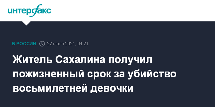 Житель Сахалина получил пожизненный срок за убийство восьмилетней девочки