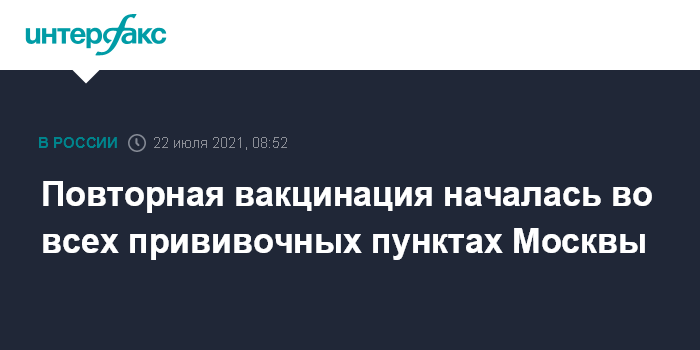 "Мы уже начали повторную вакцинацию в домах престарелых. С сегодняшнего дня, 22 июля, сделать повторную прививку "Спутником Лайт" или "Спутником V" можно будет во всех действующих городских центрах вакцинации - в 119 поликлиниках, 45 павильонах "Здоровая Москва", центрах госуслуг "Мои Документы" и других популярных общественных местах", - сказала заммэра.