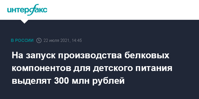 На запуск производства белковых компонентов для детского питания выделят 300 млн рублей