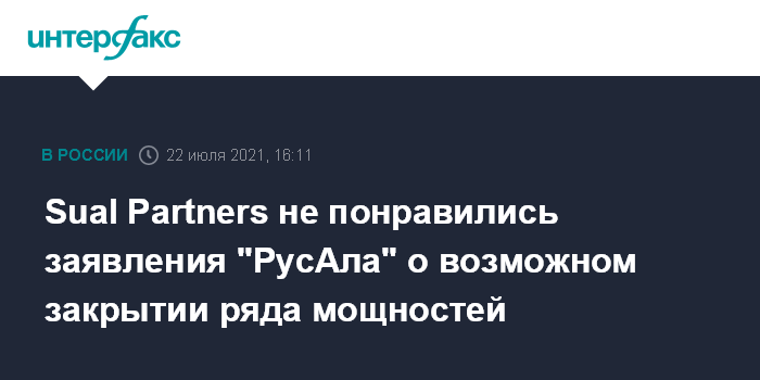 Sual Partners не понравились заявления "РусАла" о возможном закрытии ряда мощностей