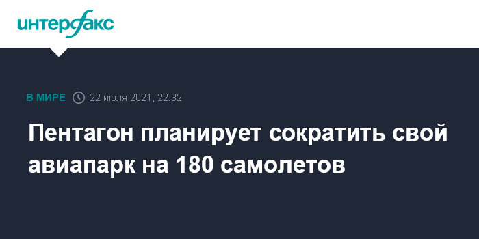 Москва. 22 июля. INTERFAX.RU - ВВС США планируют в рамках нового оборонного бюджета на 2022 год отказаться от модернизации и вывести из боевого состава более 180 отслуживших свой срок боевых самолетов в целях высвобождения средств для закупки нового вооружения, следует из рассматриваемых в американском Сенате документов.