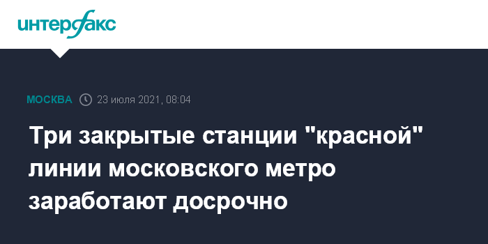 Три закрытые станции "красной" линии московского метро заработают досрочно