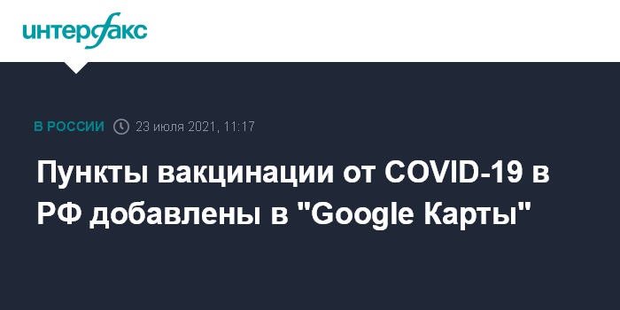 Москва. 23 июля. INTERFAX.RU - Информация о 6 тыс. как стационарных, так и мобильных пунктах вакцинации от коронавируса COVID-19 по всей России теперь доступна на "Google Картах", сообщили "Интерфаксу" в пресс-службе Google.