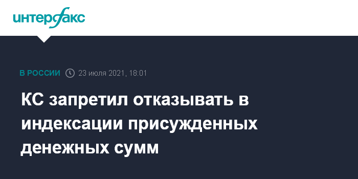 Москва. 23 июля. INTERFAX.RU - Конституционный суд признал недопустимыми отказы взыскателям в индексации присужденных денежных сумм. Часть 1 статьи 183 Арбитражного процессуального кодекса России признана неконституционной. Это постановление опубликовано на сайте КС.
