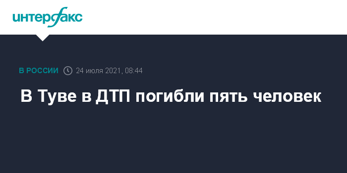 Москва. 24 июля. INTERFAX.RU - Пять человек погибли в результате дорожно-транспортного происшествия в Республике Тува, сообщает в субботу пресс-центр Главного управления МВД РФ по региону.