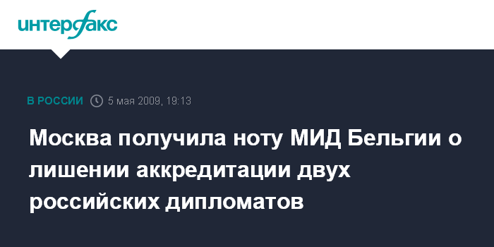 Брюссель. 5 мая. INTERFAX.RU- Постпред России при НАТО Дмитрий Рогозин сообщил, что МИД Бельгии официально известил российскую сторону о лишении аккредитации двух российских дипломатов - сотрудников постпредства Виктора Кочукова и Василия Чижова.