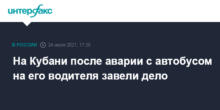 Москва. 24 июля. INTERFAX.RU - В Краснодарском крае в отношении водителя автобуса, устроившего ДТП с двумя погибшими и десятками пострадавших, возбудили дело, сообщила пресс-служба ГУ МВД России по краю в субботу.