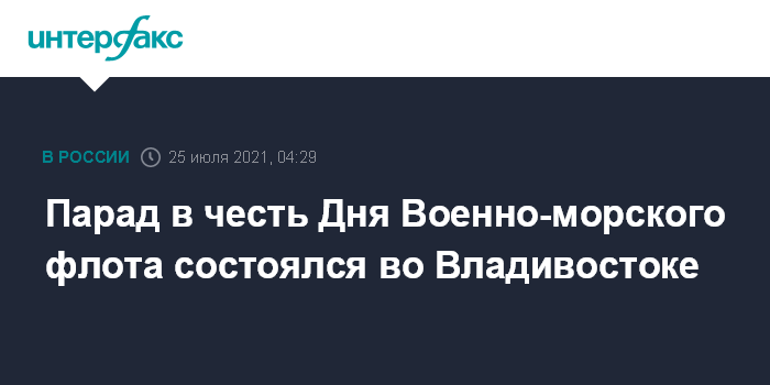 Москва. 25 июля. INTERFAX.RU - Парад кораблей в честь Дня Военно-морского флота России состоялся в воскресенье во Владивостоке - главной базе Тихоокеанского флота (ТОФ), передал корреспондент "Интерфакса".