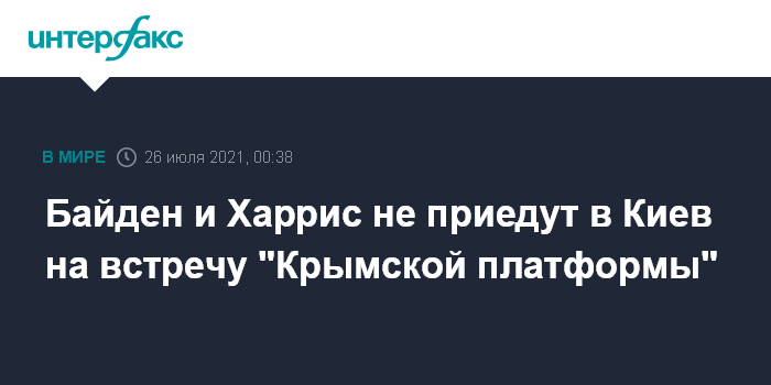 Москва. 26 июля. INTERFAX.RU - На саммите "Крымская платформа" в Киеве будет представитель правительства США вместо президента Джо Байдена и вице-президента Камалы Харрис, сообщил исполняющий обязанности временного поверенного в делах США Джордж Кент.