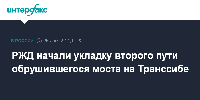 Мост размыло паводком и он рухнул 23 июля. Утром 26 июля РЖД сообщили, что восстановлено движение по одному пути. Пробные поезда по нему пустили еще в воскресенье.
