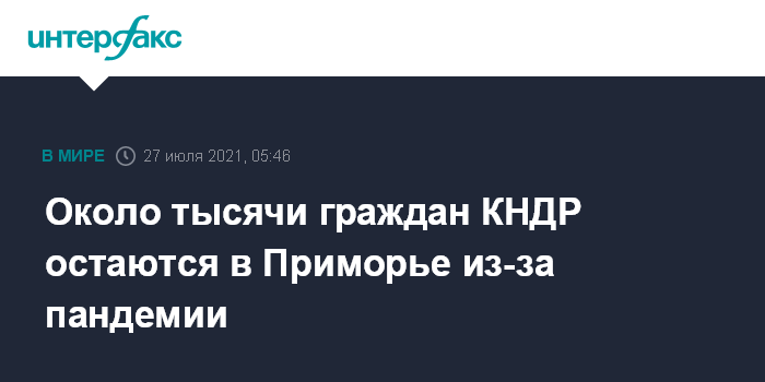 Из-за невозможности покинуть территорию РФ из-за сложной эпидемиологической обстановки в условиях пандемии коронавируса и прекращением транспортного пассажирского сообщения между Россией и КНДР на неопределенный период, указами президента РФ приостановлено течение сроков пребывания гражданам КНДР до истечения 90 суток с даты снятия временных ограничений на транспортное сообщение, пояснили в пресс-службе.