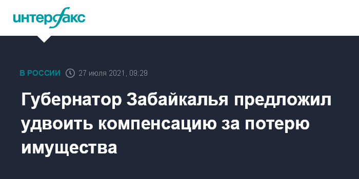 Губернатор Забайкалья предложил удвоить компенсацию за потерю имущества