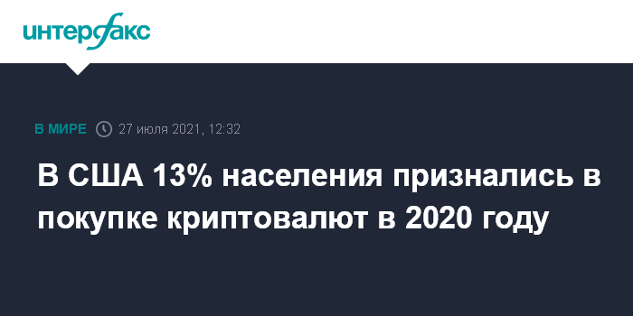В США 13% населения признались в покупке криптовалют в 2020 году