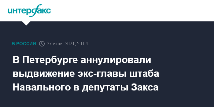 В Петербурге аннулировали выдвижение экс-главы штаба Навального в депутаты Закса