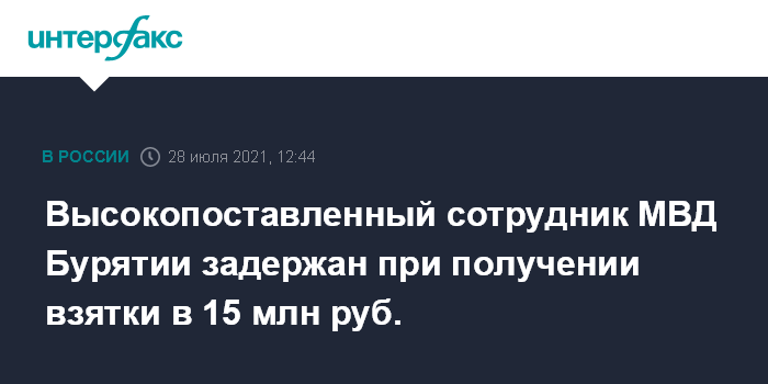 Ранее со ссылкой на пресс-службу МВД Бурятии сообщалось, что министерство проводит служебную проверку в отношении своего высокопоставленного сотрудника, подозреваемого в получении крупной взятки. В случае установления вины его уволят из органов внутренних дел по отрицательным мотивам и он понесет ответственность в соответствии с законодательством.