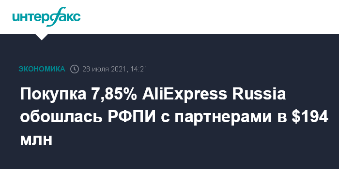 Покупка 7,85% AliExpress Russia обошлась РФПИ с партнерами в $194 млн