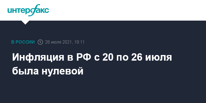 Инфляция в РФ с 20 по 26 июля была нулевой