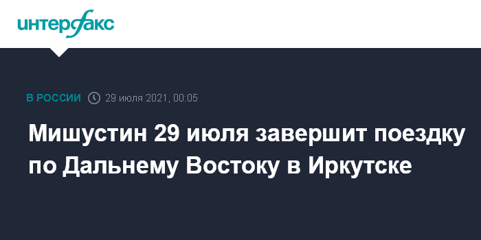 Москва. 29 июля. INTERFAX.RU - Премьер-министр РФ Михаил Мишустин в четверг завершит поездку в Дальневосточный и Сибирский федеральные округа посещением Иркутска.