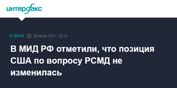 В МИД РФ отметили, что позиция США по вопросу РСМД не изменилась
