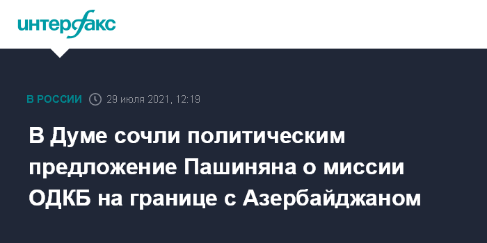 В Думе сочли политическим предложение Пашиняна о миссии ОДКБ на границе с Азербайджаном