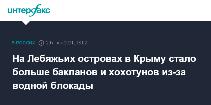 Москва. 29 июля. INTERFAX.RU - Прекращение Украиной подачи пресной воды в Крым по Северо-Крымскому каналу улучшило экологическую ситуацию на Лебяжьих островах на северо-западе полуострова. Об этом сообщил старший государственный инспектор заповедника Сергей Наливайко.