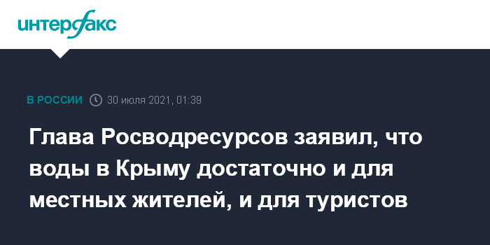 Москва. 30 июля. INTERFAX.RU - Запасов воды на Крымском полуострове сейчас достаточно и для собственных нужд региона, и для приема туристов, заявил руководитель Федерального агентства водных ресурсов РФ (Росводресурсы) Дмитрий Кириллов.