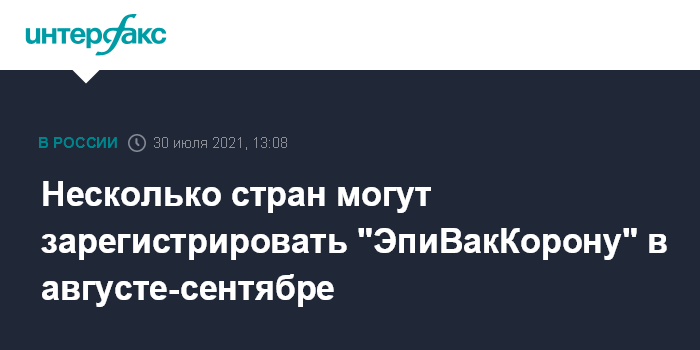 Несколько стран могут зарегистрировать "ЭпиВакКорону" в августе-сентябре