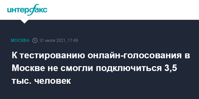 Москва. 31 июля. INTERFAX.RU - Принять участие в тестировании онлайн-голосования, которое завершилось накануне в Москве, не смогли около 3,5 тыс. владельцев подтвержденной учетной записи на портале мэрии столицы (mos.ru), сообщил начальник управления по совершенствованию территориального управления и развитию смарт-проектов правительства города Артем Костырко.