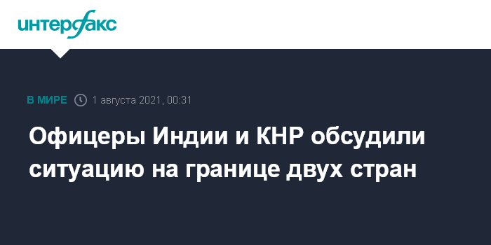 Москва. 1 августа. INTERFAX.RU - Высшие офицеры армий Индии и КНР встретились 31 июля для обсуждения ситуации с отводом войск двух стран из приграничных территорий. Об этом сообщает Associated Press.