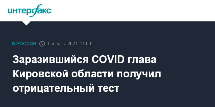 Москва. 1 августа. INTERFAX.RU - Тест на коронавирус у губернатора Кировской области Игоря Васильева, который с 26 июля работает удаленно из-за заражения, показал отрицательный результат, сообщил глава региона на своей странице во "Вконтакте".