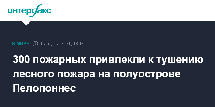Москва. 1 августа. INTERFAX.RU - Примерно 300 пожарных, пять вертолетов и два самолета участвуют в тушении сильного лесного пожара, разгоревшегося на греческом полуострове Пелопоннес, сообщают в воскресенье западные СМИ.