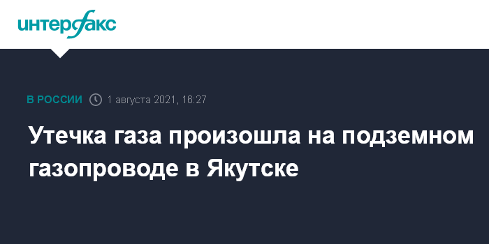 Москва. 1 августа. INTERFAX.RU - Специалисты в воскресенье ликвидируют аварию на подземном газопроводе в Якутске, где произошла утечка газа.
