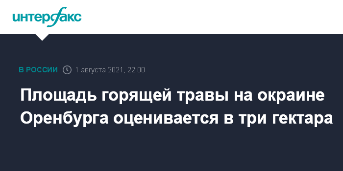 Москва. 1 августа. INTERFAX.RU - Горение сухой травы в районе Протопоповской рощи в Оренбурге, по предварительным данным, происходит на площади 3 гектара, сообщили "Интерфаксу" в пресс-службе регионального главка МЧС в воскресенье.