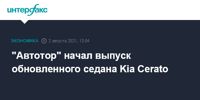 Москва. 2 августа. INTERFAX.RU - Группа компаний "Автотор" начала производство обновленной модели седана Kia Cerato, сообщила пресс-служба "Автотора".