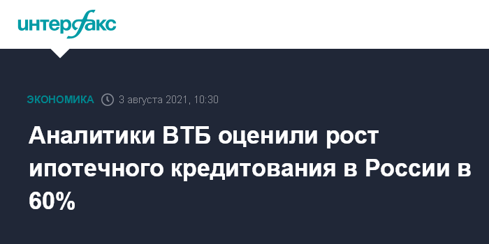 Аналитики ВТБ оценили рост ипотечного кредитования в России в 60%