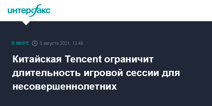 Москва. 3 августа. INTERFAX.RU - Китайский интернет-гигант Tencent Holdings Ltd объявил, что ограничит длительность игровой сессии для несовершеннолетних пользователей, после публикации в государственном издании статьи с критикой онлайн-игр.