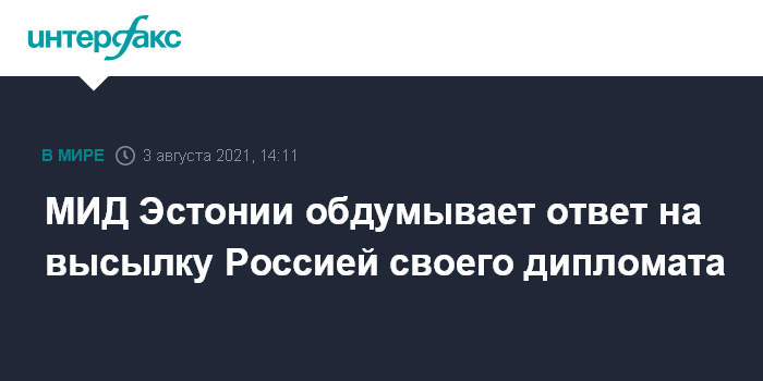 Москва. 3 августа. INTERFAX.RU - МИД Эстонии еще не решил, как ответить на высылку дипломата из России, сообщили "Интерфаксу" в пресс-службе внешнеполитического ведомства республики.