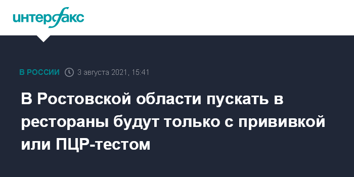 В Ростовской области пускать в рестораны будут только с прививкой или ПЦР-тестом