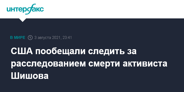 Москва. 3 августа. INTERFAX.RU - Власти США будут следить за ходом расследования смерти главы "Белорусского дома на Украине" Виталия Шишова, заявил во вторник представитель госдепа Нед Прайс.