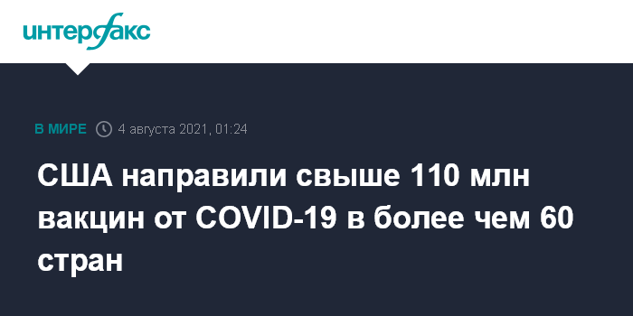 Москва. 4 августа. INTERFAX.RU - В Белом доме заявили, что США пожертвовали и отправили более 110 миллионов доз вакцин от COVID-19 в более чем 60 стран мира. Об этом сообщает Associated Press.