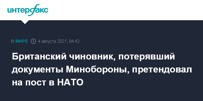 Москва. 4 августа. INTERFAX.RU - Высокопоставленный государственный служащий, который потерял 50 страниц секретных документов министерства обороны Великобритании, был в очереди на пост постоянного представителя Великобритании в НАТО, сообщает The Guardian со ссылкой на осведомленные источники.