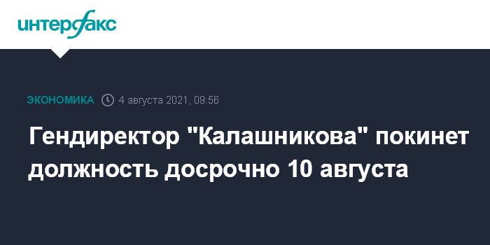 Гендиректор "Калашникова" покинет должность досрочно 10 августа