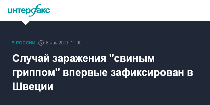 Стокгольм. 6 мая. INTERFAX.RU - Шведские медики зафиксировали первый в стране подтвержденный случай заболевания вирусом A/H1N1.